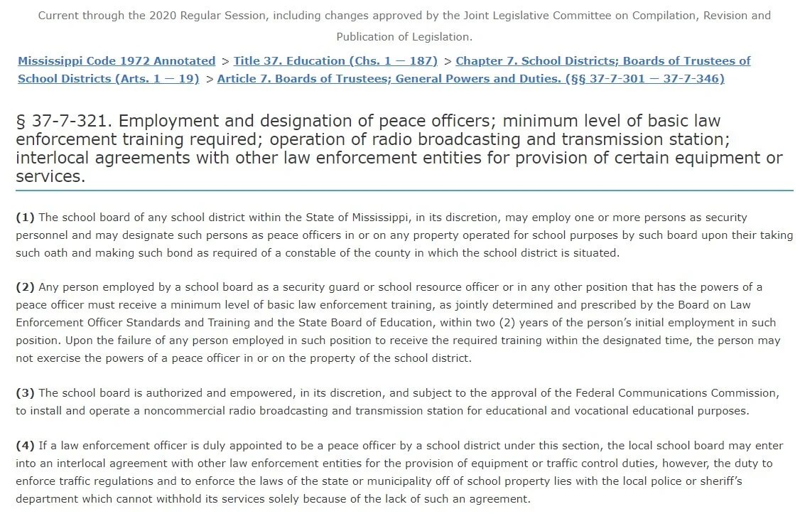 Mississippi Code 37-7-321: Training Definitions for SRO, Campus Enforcement & SSO